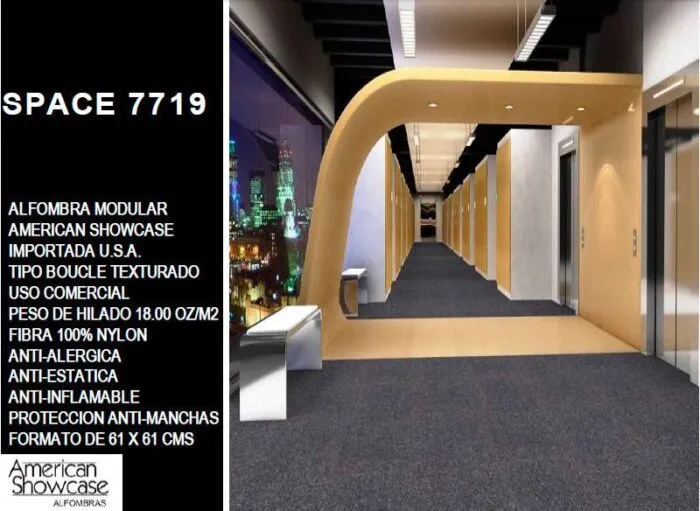 Además de la personalización, las alfombras modulares ofrecen varias ventajas prácticas. Por ejemplo, su diseño modular facilita el reemplazo de secciones dañadas o desgastadas sin necesidad de sustituir toda la alfombra, lo cual puede ser especialmente útil en áreas de alto tráfico. Esta característica no solo prolonga la vida útil del producto, sino que también puede resultar en un ahorro significativo en costos de mantenimiento y reemplazo a largo plazo.